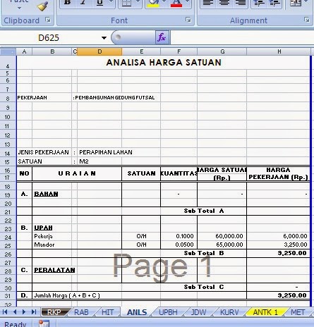 Dalam File ini terdiri dari File Excel RAB Lapangan Futsal dengan Sheet File :
